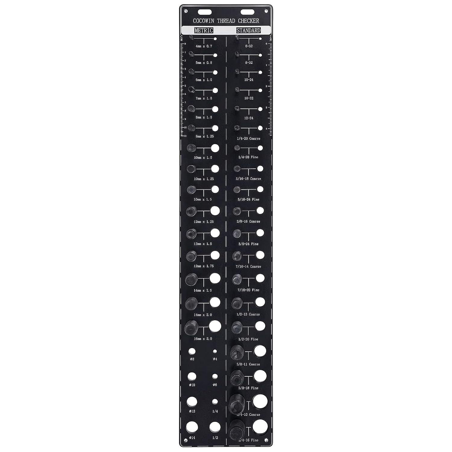 MULTIFUNCTIONAL DESIGN - Built in ruler with 6 inches and 14 centimeters on both sides, the screw thread gauge helps you quickly identify different length of bolt, screw, nut.